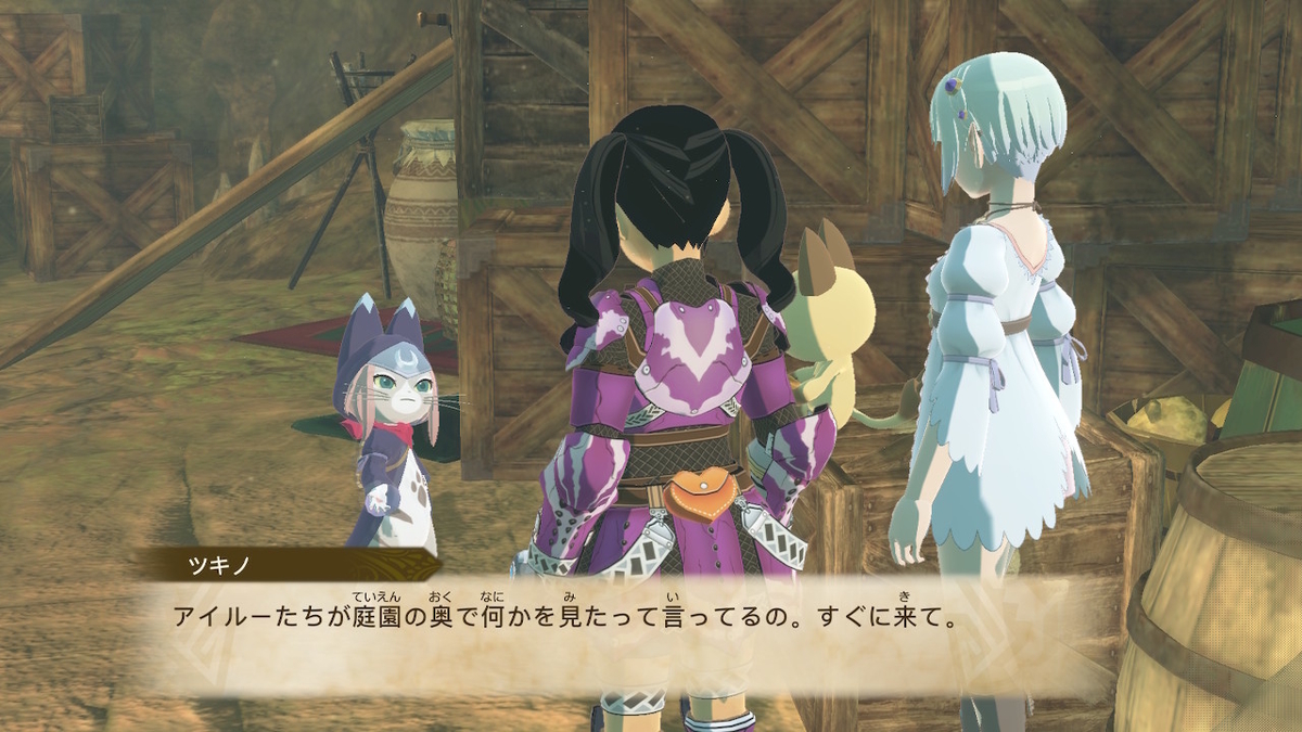 そこにツキノやってきて、アイルーたちが庭園の奥で何かを見たらしいと言います