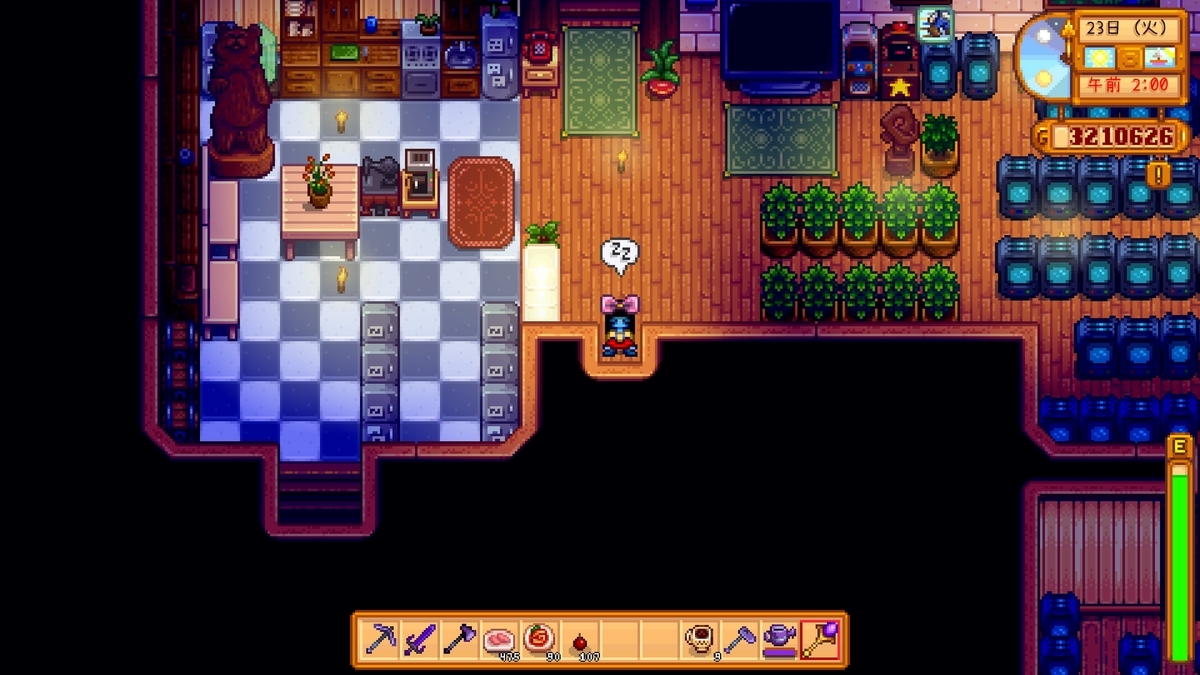 今回はジンジャーアイランドの農場という大きい温室のような場所増えているので大量に作物を作って加工してガンガン売っていくほうが気持ちいいかもしれないデス